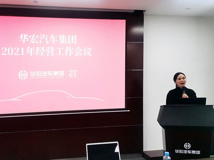 會(huì)議中,程文姣女士首先向華宏奔馳望城旗艦店全體事業(yè)合作伙伴轉(zhuǎn)述華宏汽車集團(tuán)董事長(zhǎng)戴華先生代表集團(tuán)董事會(huì)于《華宏汽車集團(tuán)2021年經(jīng)營(yíng)工作會(huì)議》中作的2021年經(jīng)營(yíng)工作報(bào)告,并指出我們需要充分理解并執(zhí)行集團(tuán)全年規(guī)劃,堅(jiān)定信心,凝聚力量,緊緊抓住寶貴的市場(chǎng)機(jī)遇,緊隨集團(tuán)腳步,貫徹會(huì)議精神,勇敢迎接任務(wù)與挑戰(zhàn),攻堅(jiān)克難,不斷創(chuàng)造新的佳績(jī),登上新的高度,奮力開創(chuàng)華宏跨越式發(fā)展新局面。