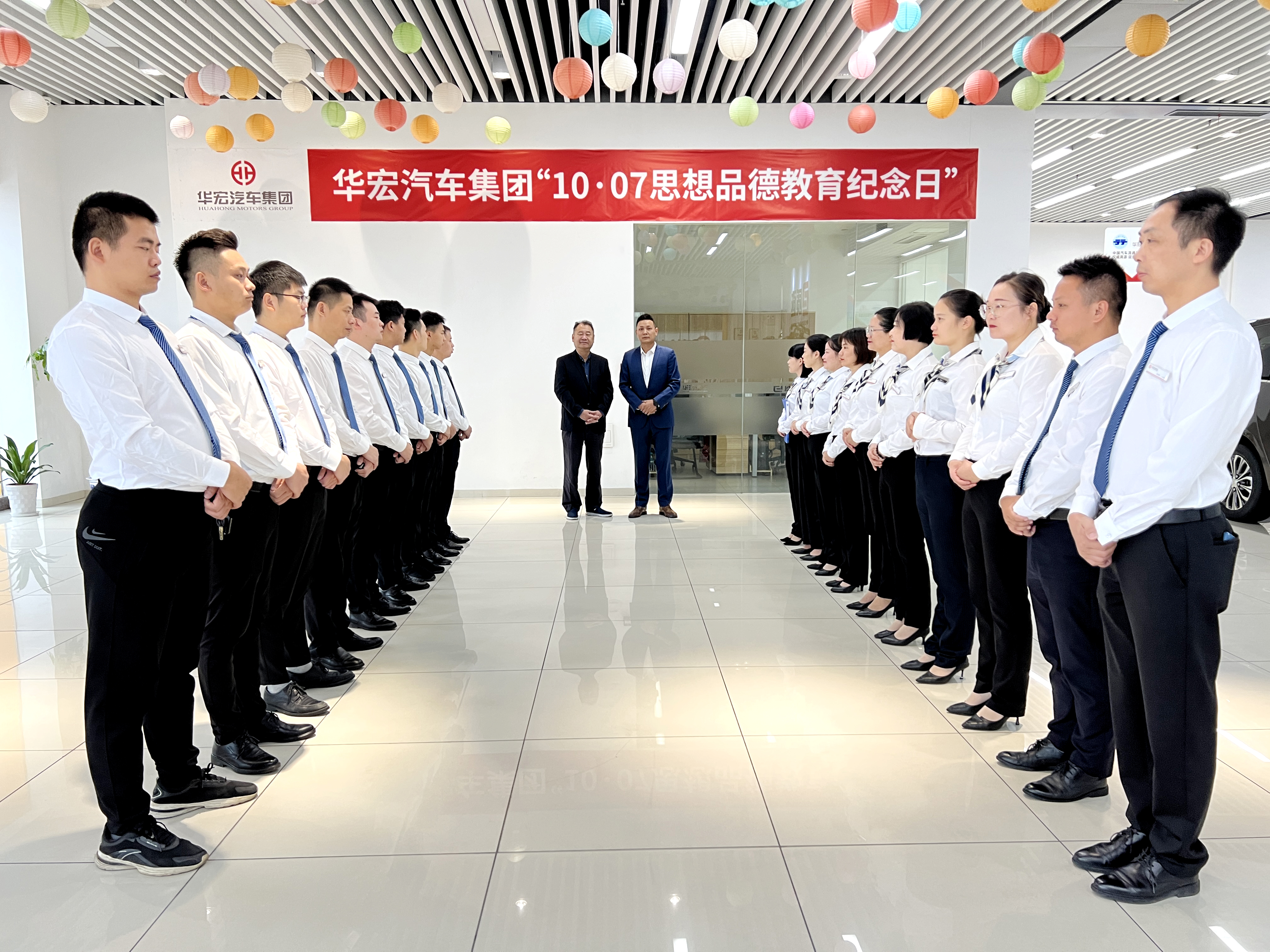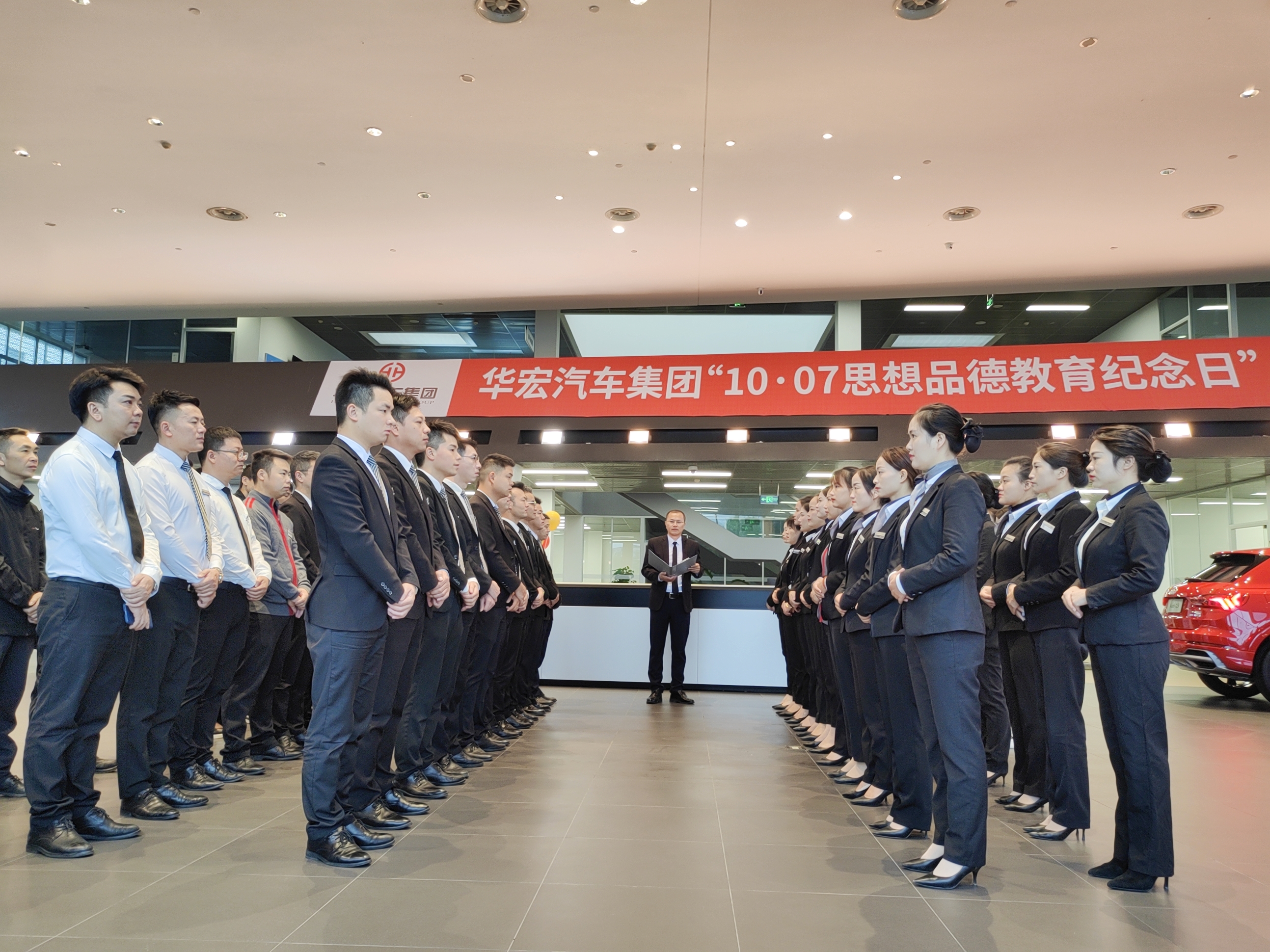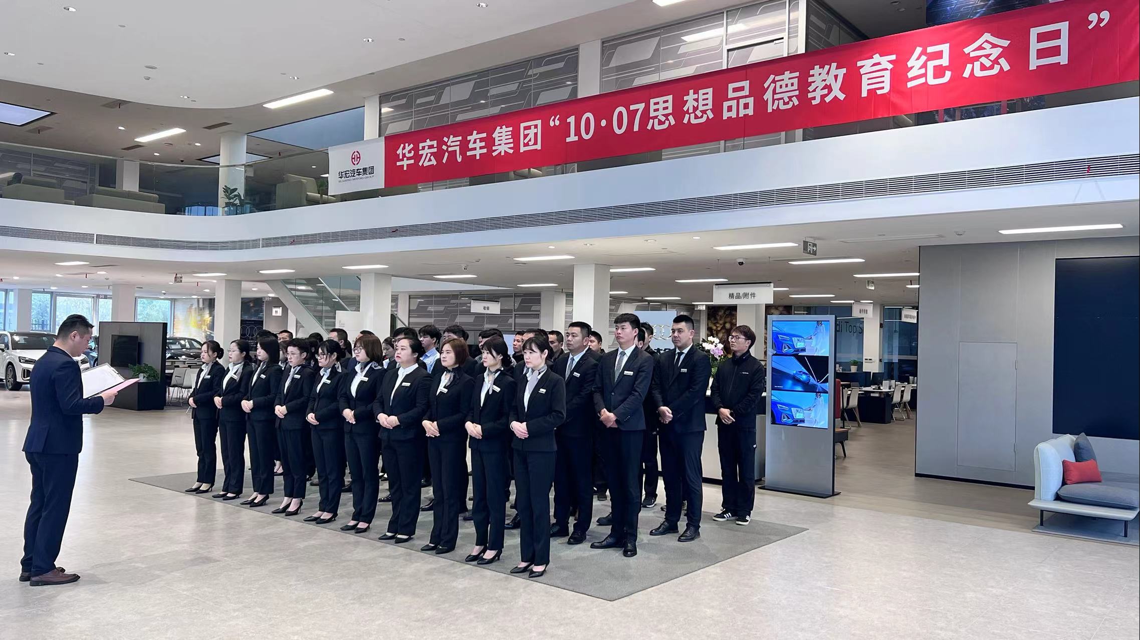 10月7日上午,在舉國歡慶,喜迎黨的二十大勝利召開之際,集團及全省各地子公司同步莊嚴聚會,舉行華宏汽車集團第11個“10·07思想品德教育紀念日”特別晨會。連續11年的警示教育,旨在讓全體華宏人牢記11年前的思想品德事件,警醒和教育每一位事業合作伙伴,樹立正確的人生觀、價值觀和世界觀,傳承中華傳統美德,傳遞社會正能量,自覺規范道德行為, 保持良好道德風尚。