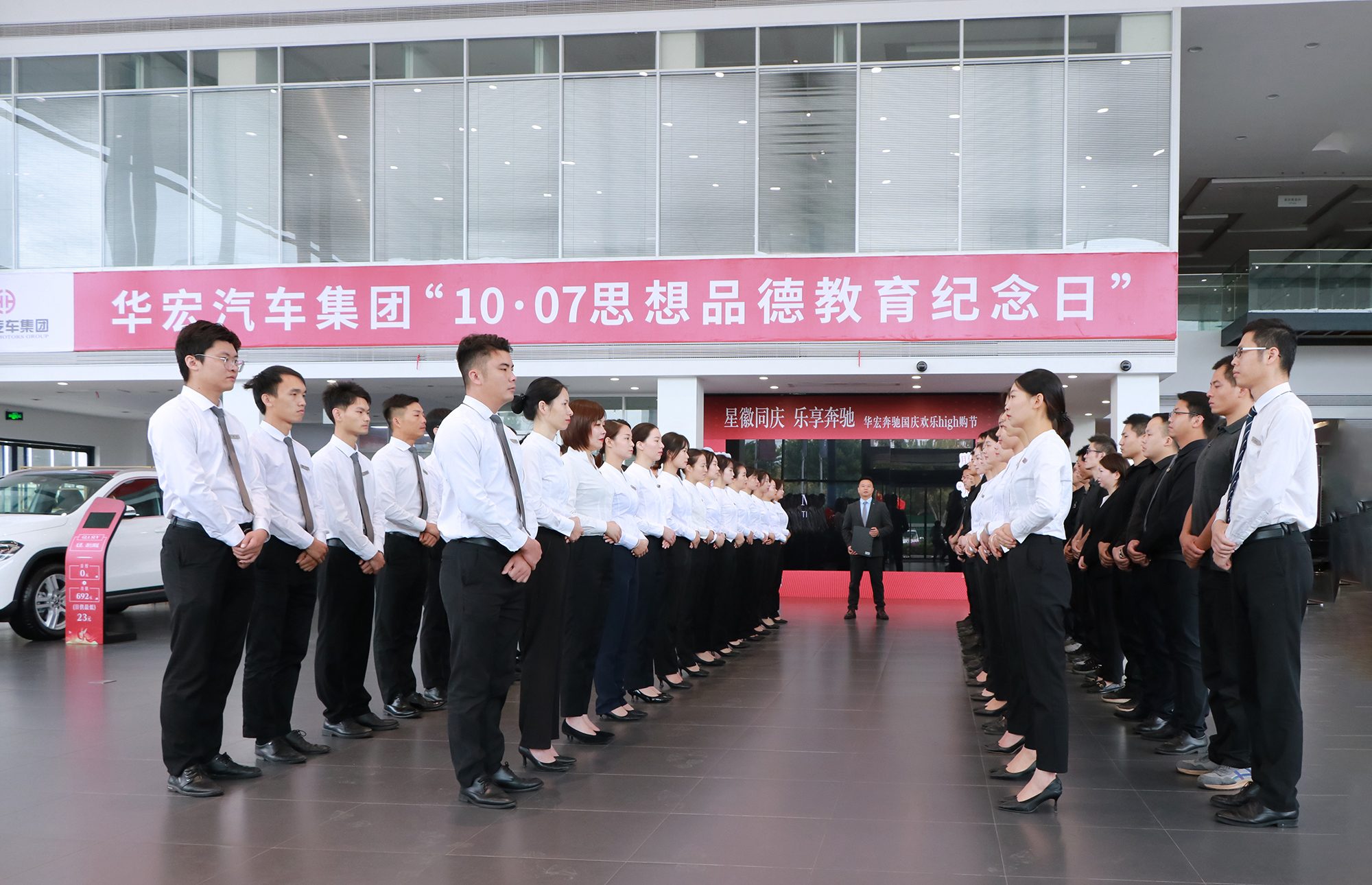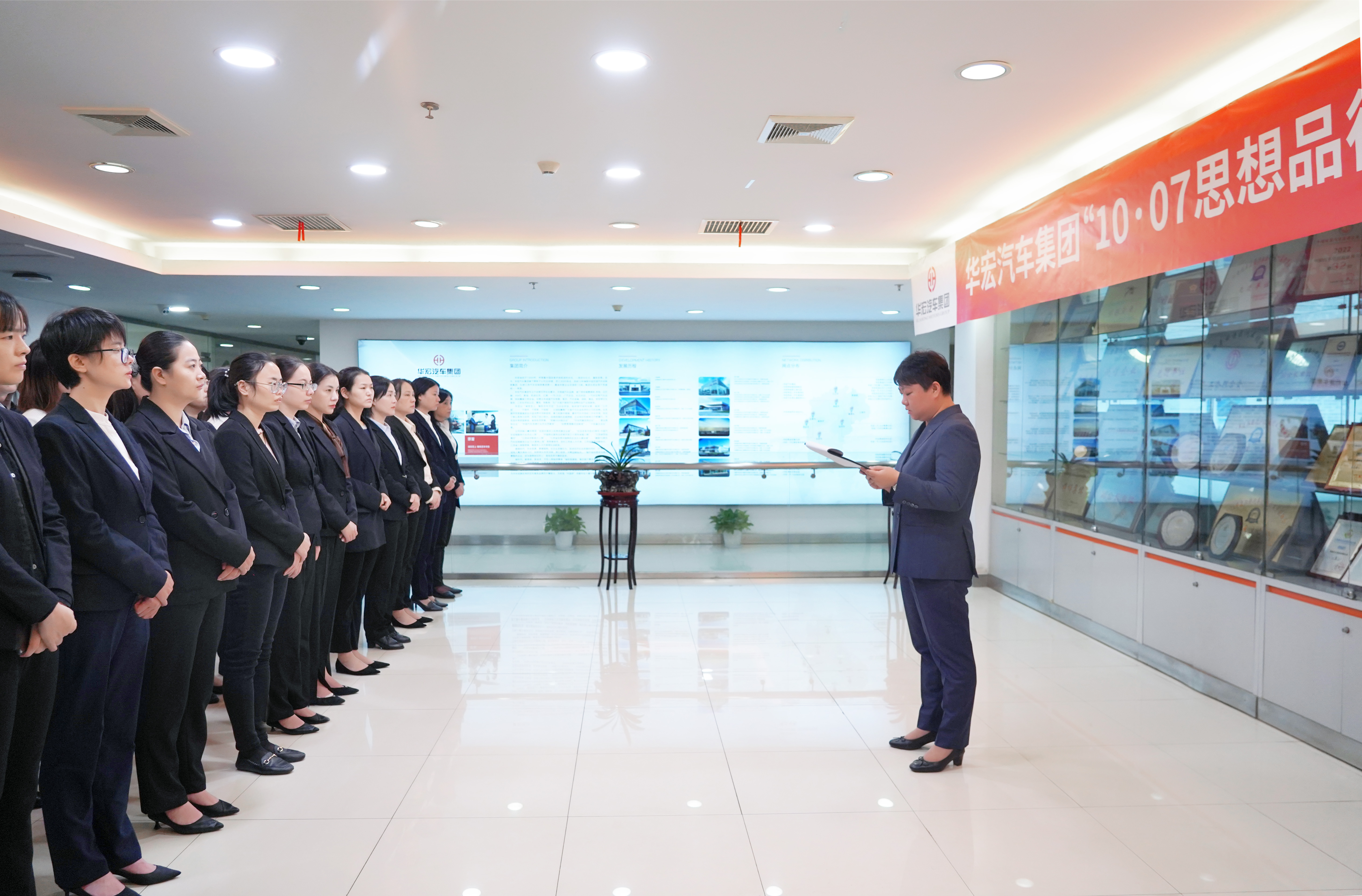董事長戴華出席青云譜奔馳晨會并講話。他指出,華宏是一個對事業合作伙伴、對社會負責的經營組織,我們既追求經營業績的創造,也追求讓員工生活得有尊嚴,生活得更加幸福。加強思想品德教育、引導,讓每位華宏人樹立正確的思想道德觀念,懂法守法,堂堂正正做人,干干凈凈做事,傳承遵循中華民族的傳統美德,對事業有追求,對家庭和社會有責任,是實現華宏人尊嚴和幸福的基礎。他強調,人以德為先,不是自己的東西堅決不能拿,只有通過自己的辛勤勞動和雙手去創造獲得的,才是我們合法所得。面對當前經濟、行業形勢,全體華宏人不僅僅要堅守高尚的道德品質,還要更加積極努力地去開拓市場,肩負起自身的責任和使命,有擔當、敢挑戰,始終以客戶為中心,堅持誠信,堅守匠心,給客戶更好的服務體驗,不斷提升客戶滿意度,為把華宏打造成中華民族優秀的百年服務品牌,為讓華宏人生活得有尊嚴,生活得更加幸福不懈奮斗!