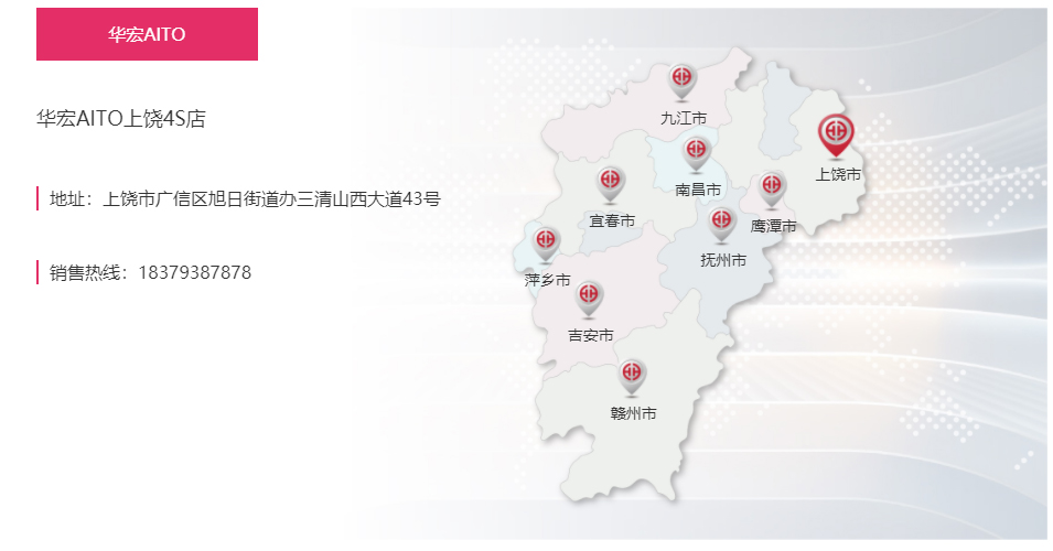 華宏AITO上饒4S店位于上饒月亮灣汽車城43號,地理位置優越,地處上饒重要的汽車商圈。致力于為上饒消費者提供新車銷售、車輛交付、金融保險、精品美容、二手車置換及售后維修等全方位服務。