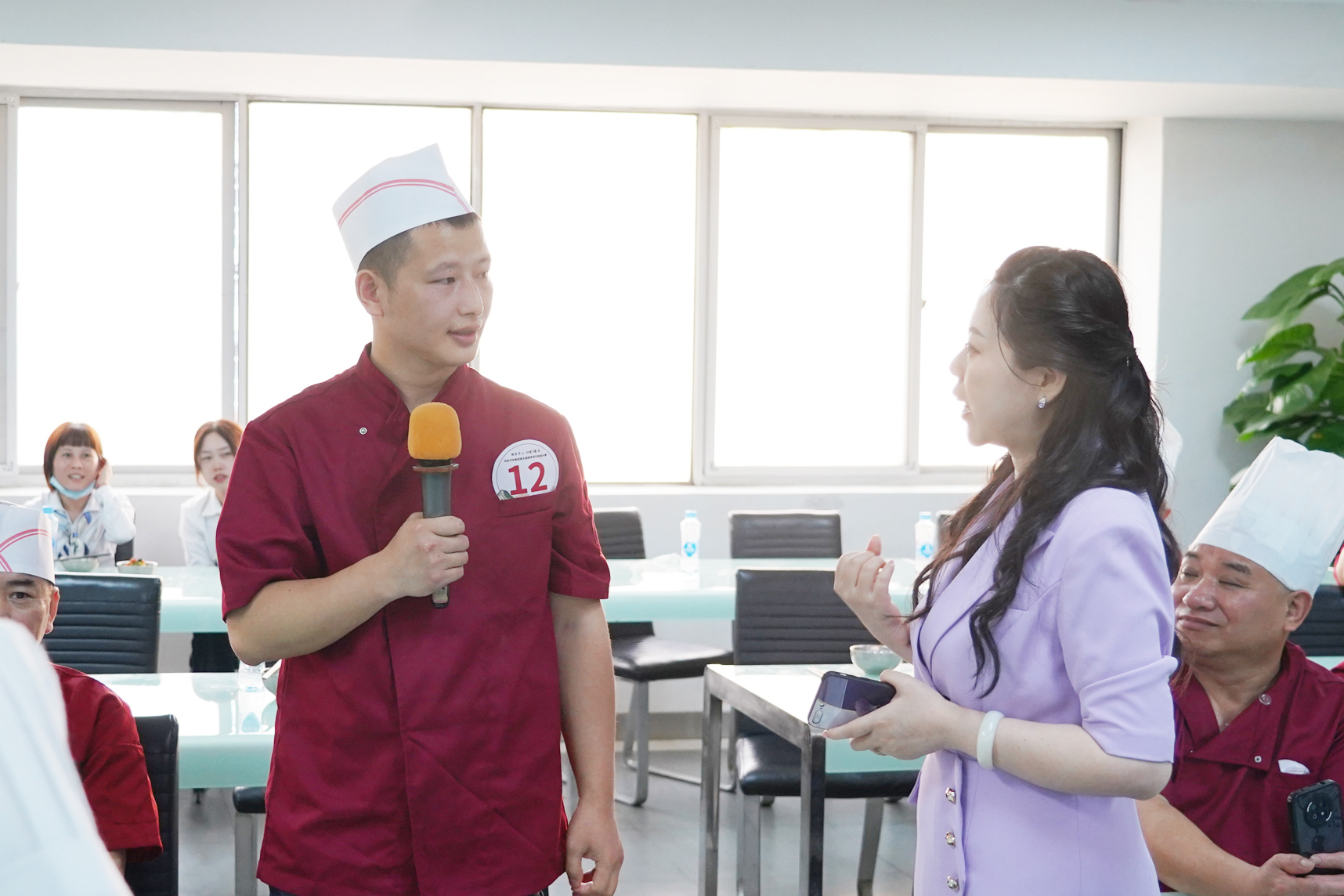 大賽預賽分為烹飪理論知識評比及現場烹飪技能比拼,來自集團各子公司的23位選手參加角逐,最終6位選手進入決賽。進入決賽的6位選手現場抽取盲盒,根據盲盒中的食材自由發揮,在30分鐘內完成一道精美的菜肴,由烹飪專家評委和2名大眾評委共同打分。烹飪專家評委打分占比70%,大眾評委打分占比30%。