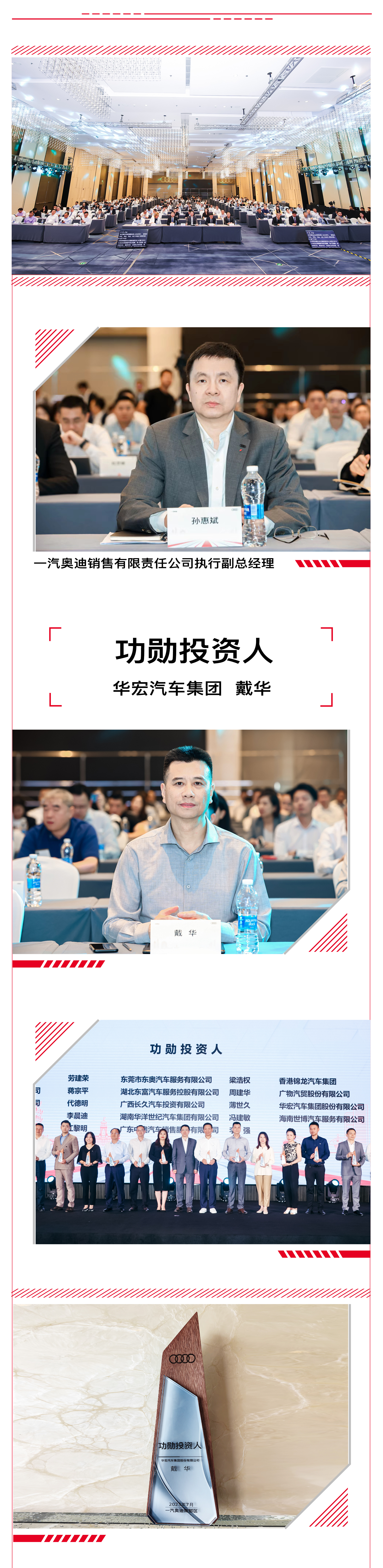 集智向新,勢在必贏。2023年7月19日,一汽奧迪南部區在武漢召開“凝心聚力·篤行共進-2023年一汽奧迪南部區特許經銷商年中會議”,共謀發展新方向,探討新機遇,不斷突破,以奮進之姿迎接新征程。華宏汽車集團董事長戴華出席會議。