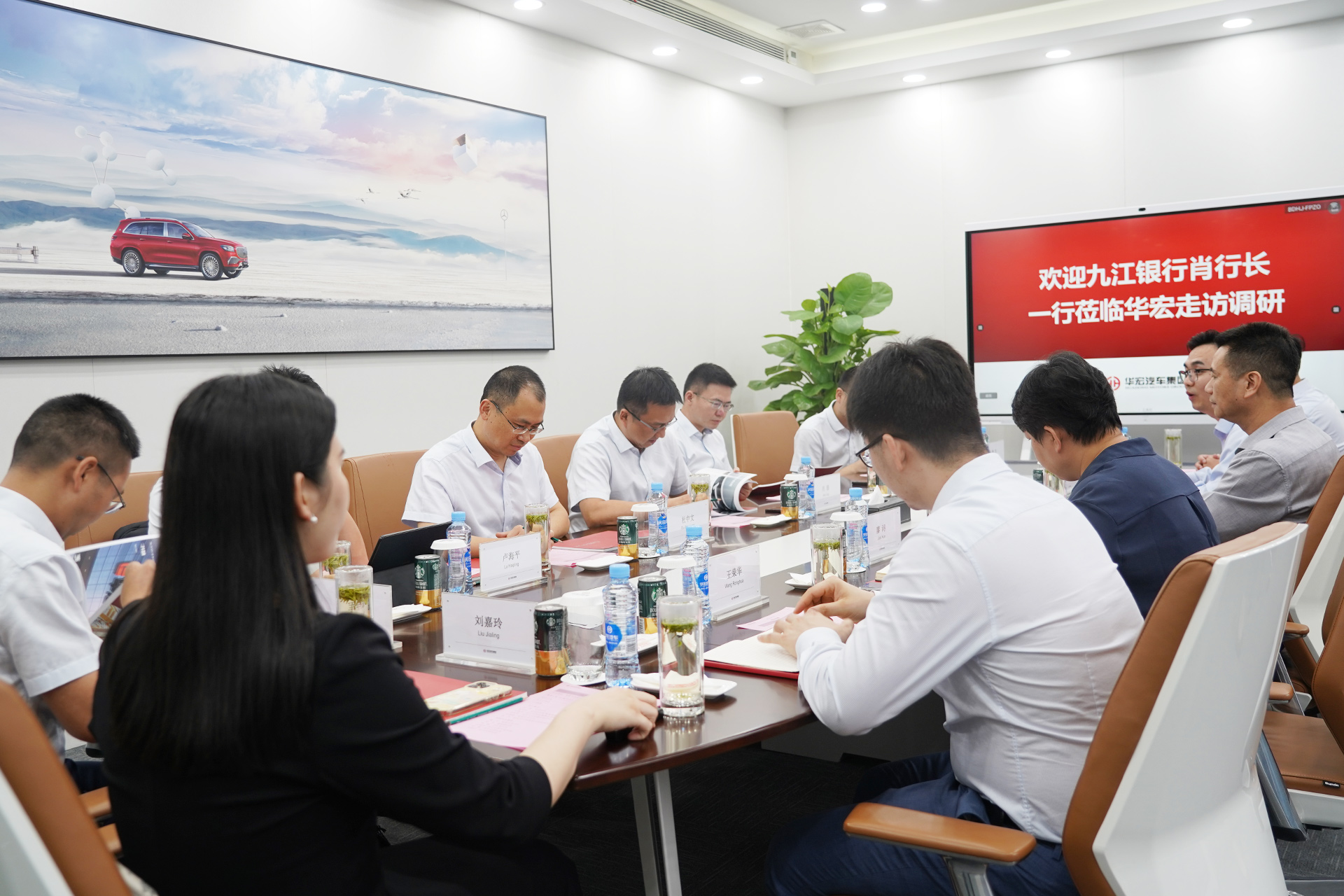 2023年7月25日,九江銀行總行行長肖璟、南昌分行行長朱德銀,以及總行相關部門負責人一行走訪調研華宏汽車集團,考察了華宏奔馳望城旗艦店,并進行了深入的座談交流。華宏汽車集團董事長戴華、董事副總裁廖潯等共同接待了九江銀行領導一行。