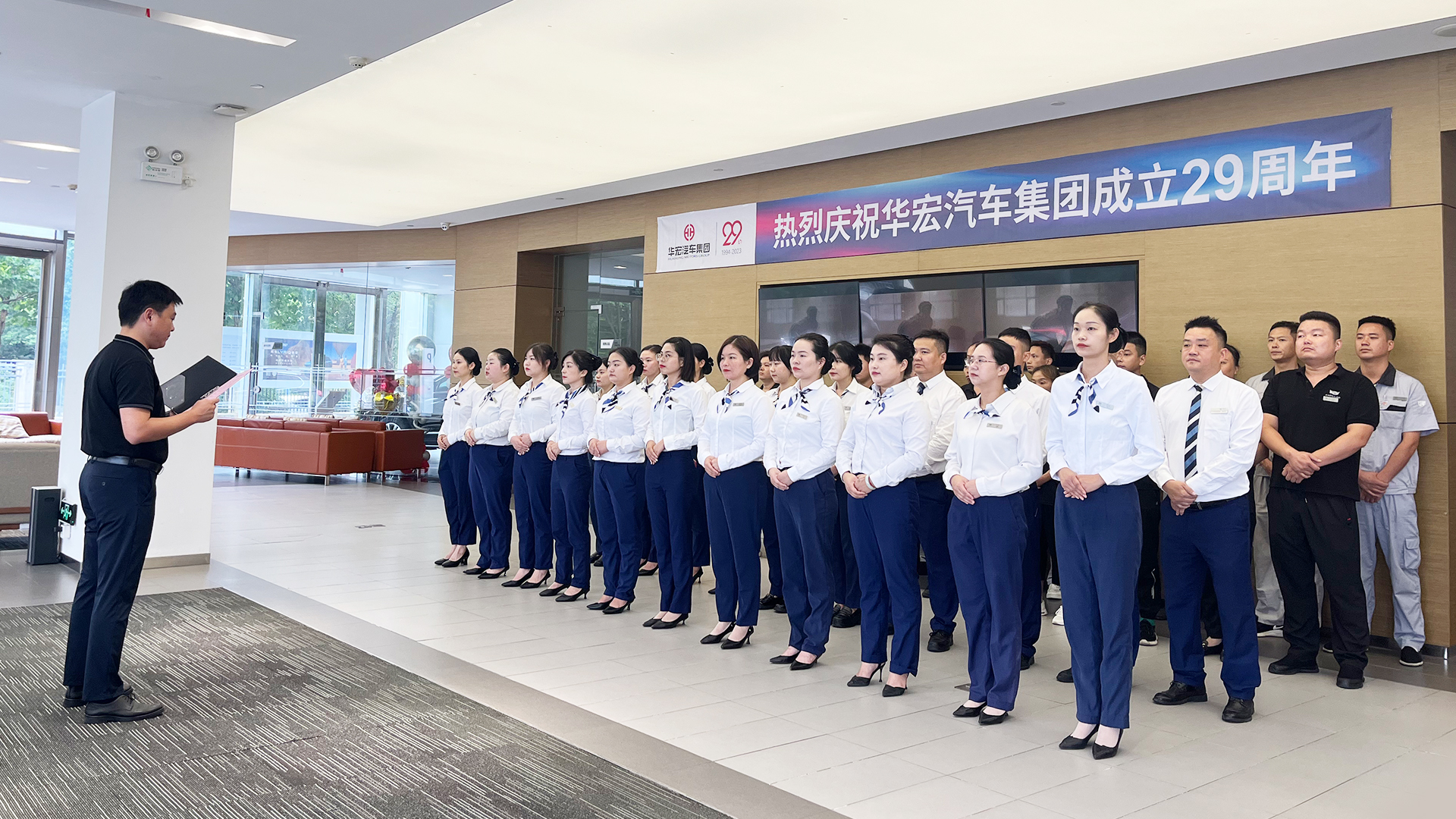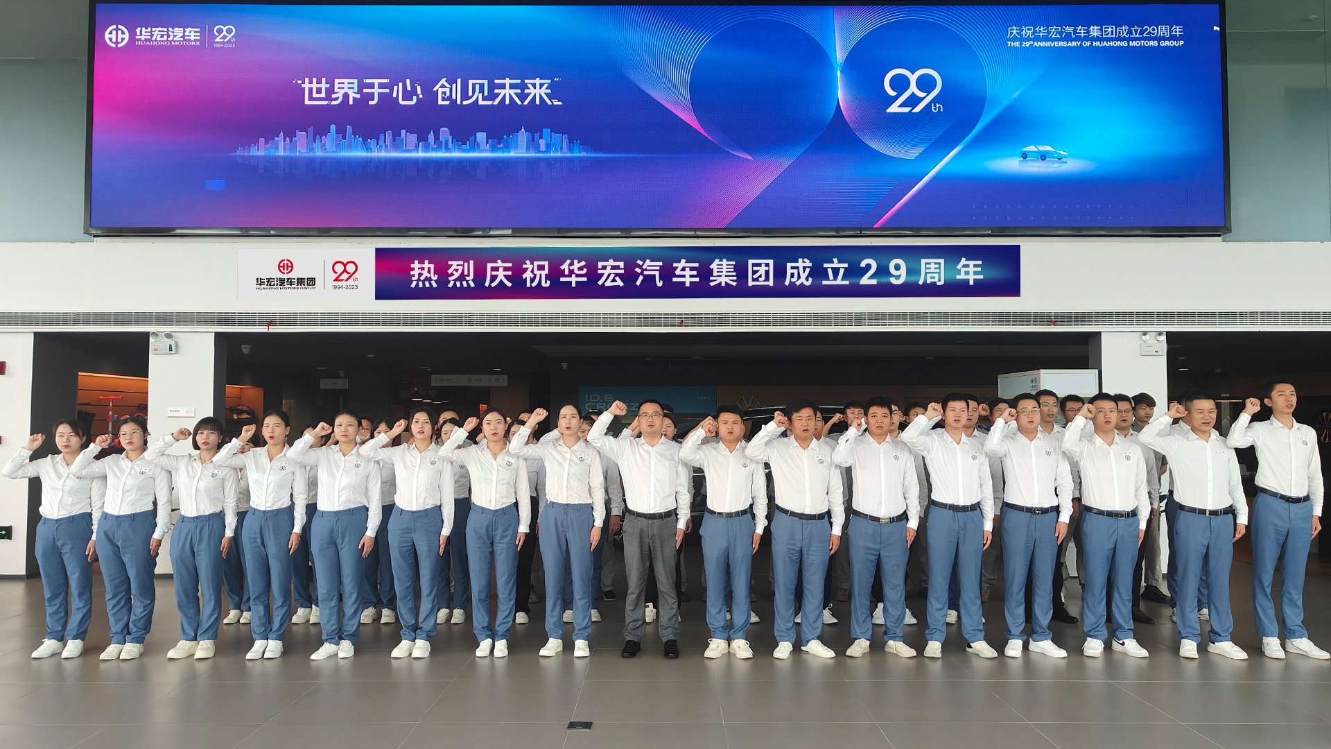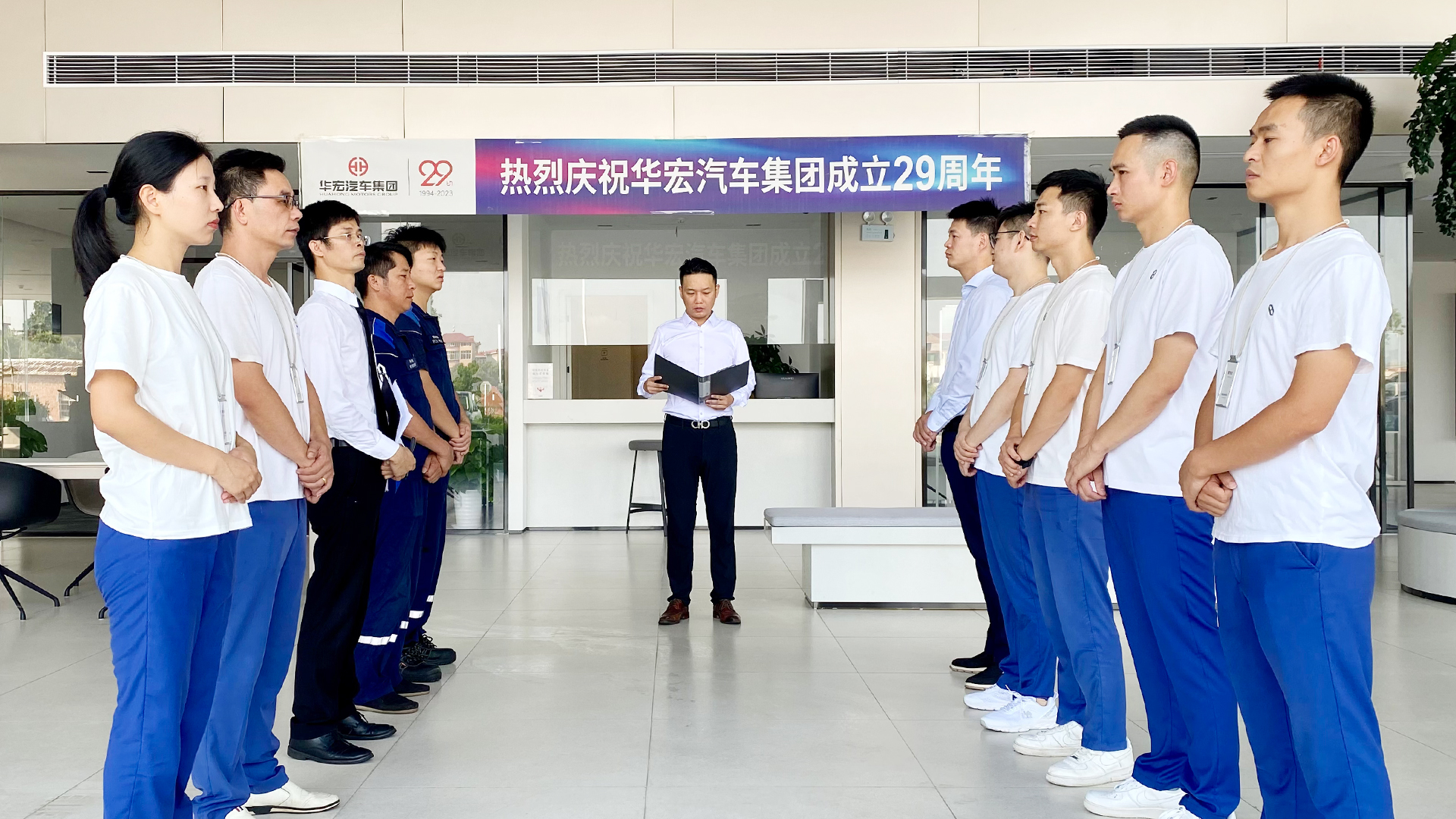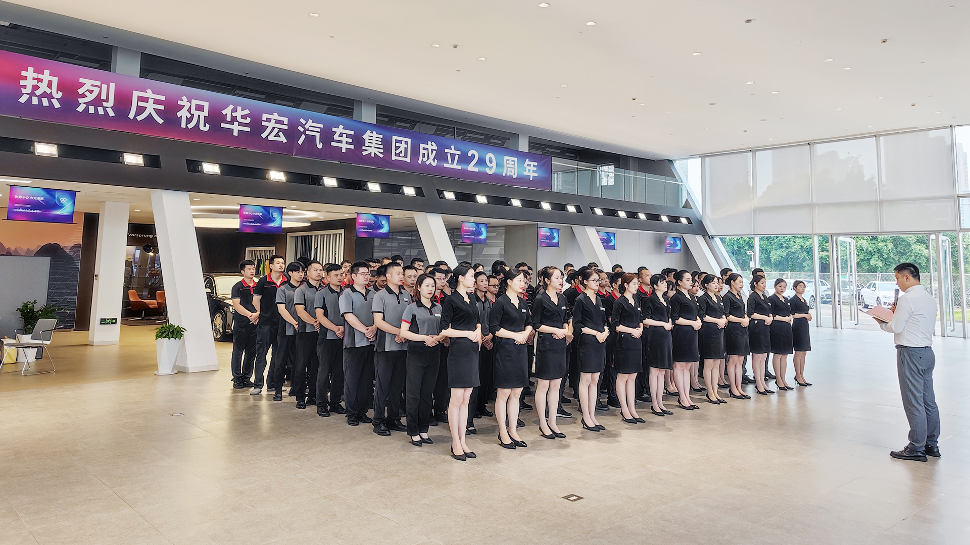 8月15日清晨,華宏汽車集團及旗下各子公司在同一時點,同步舉行特別晨會,共同慶祝華宏成立29周年。集團董事長戴華,黨委書記汪玉奇,集團各副總裁、總裁助理、品牌總經理分別出席各子公司晨會。