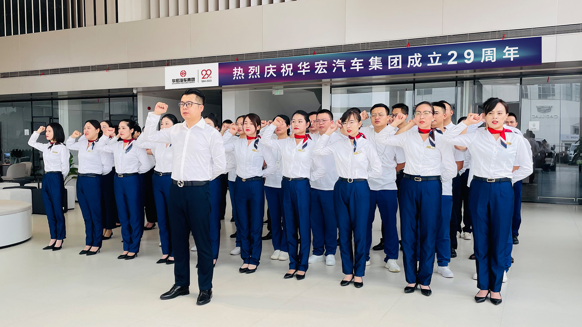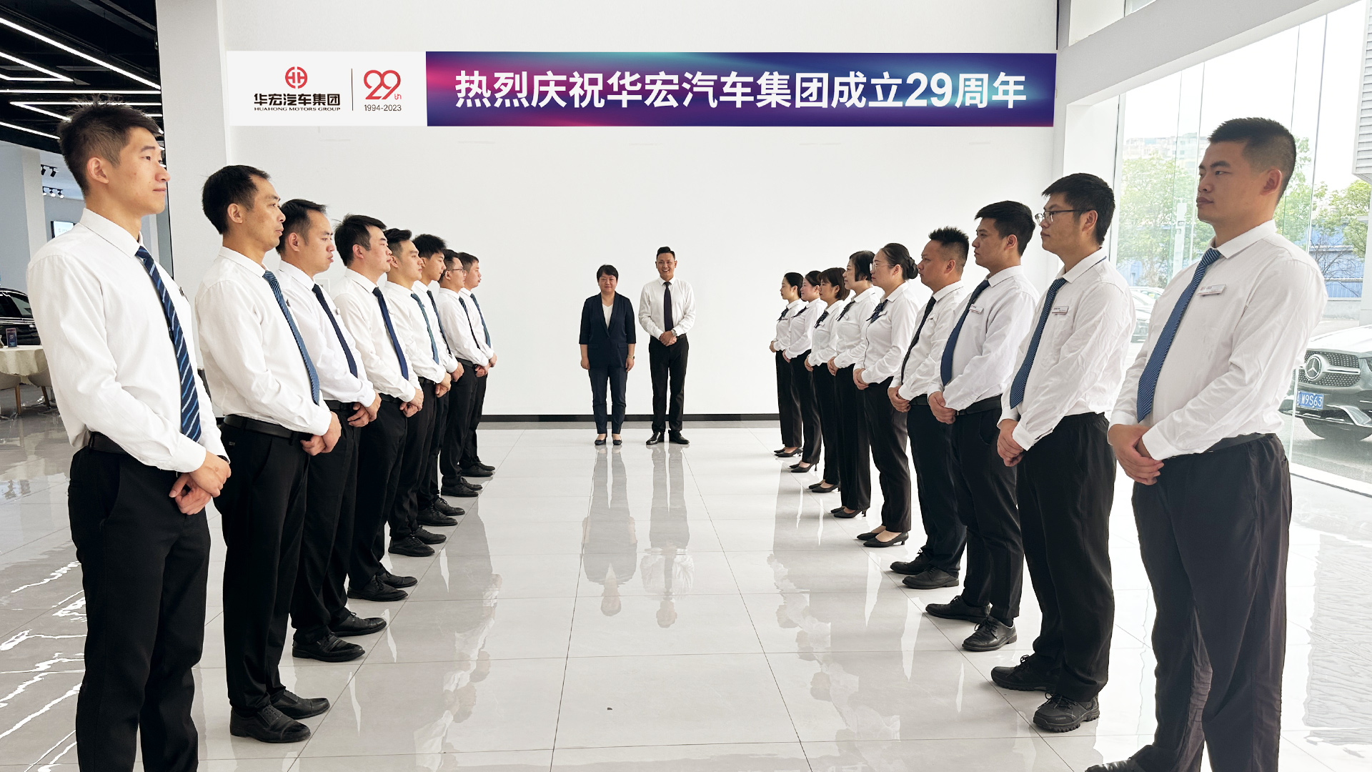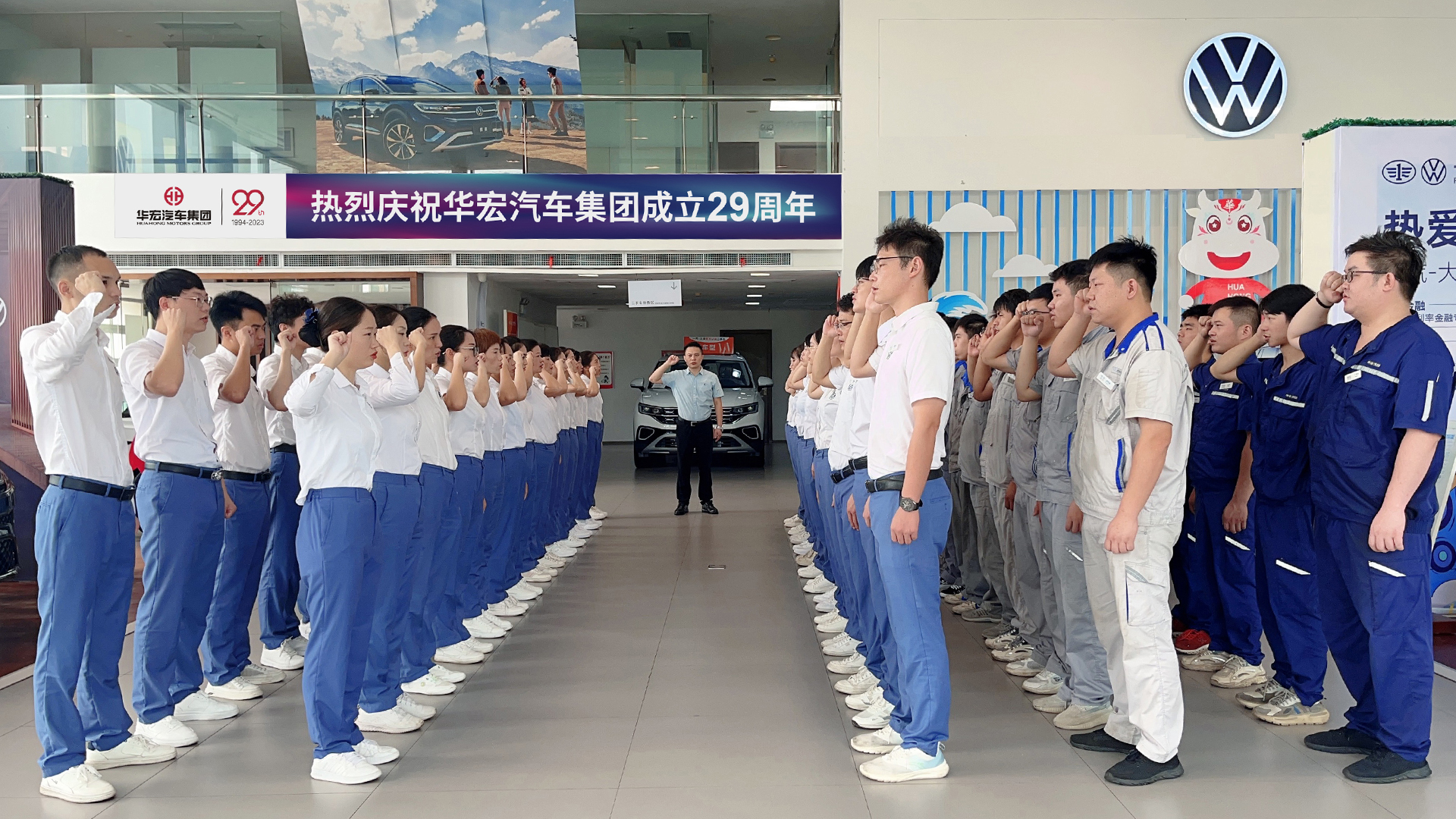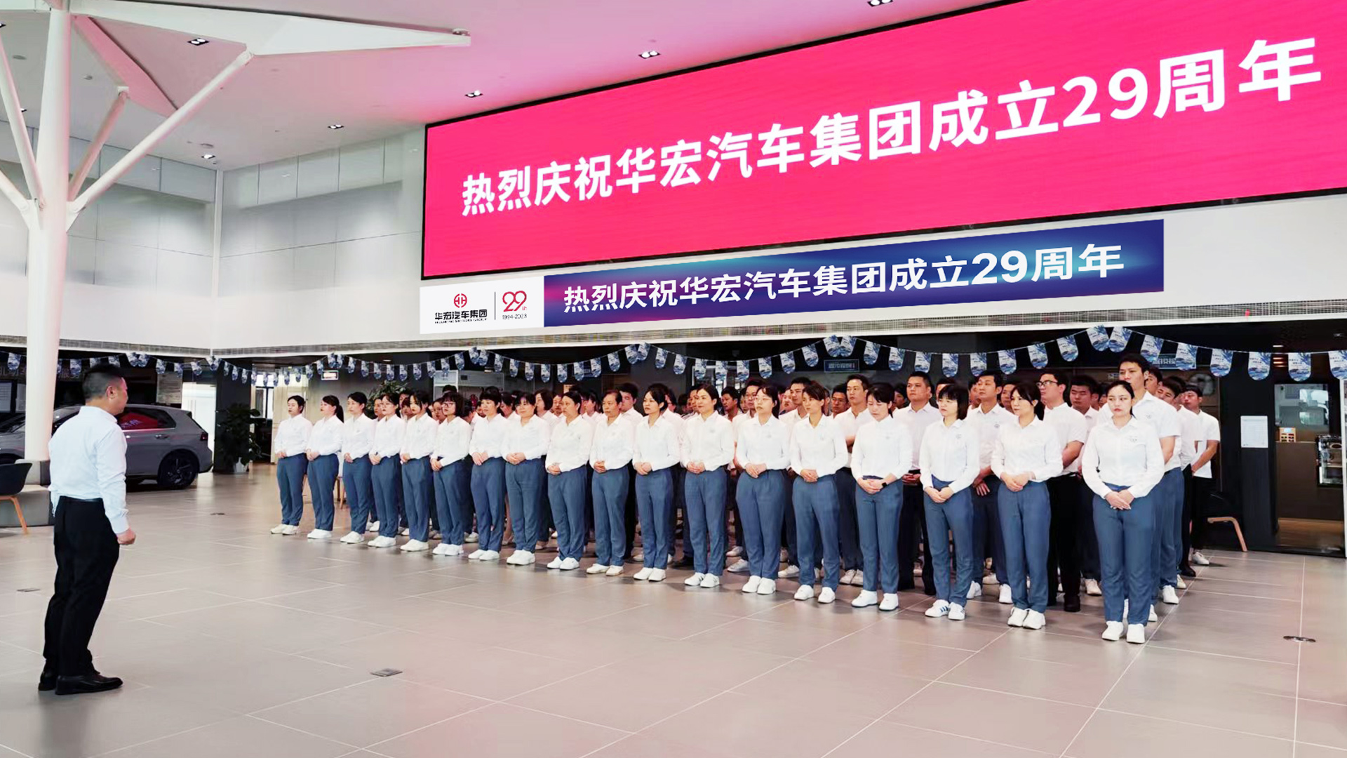 8月15日清晨,華宏汽車集團及旗下各子公司在同一時點,同步舉行特別晨會,共同慶祝華宏成立29周年。集團董事長戴華,黨委書記汪玉奇,集團各副總裁、總裁助理、品牌總經理分別出席各子公司晨會。