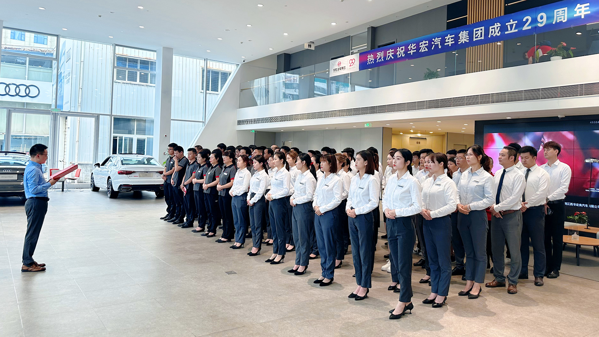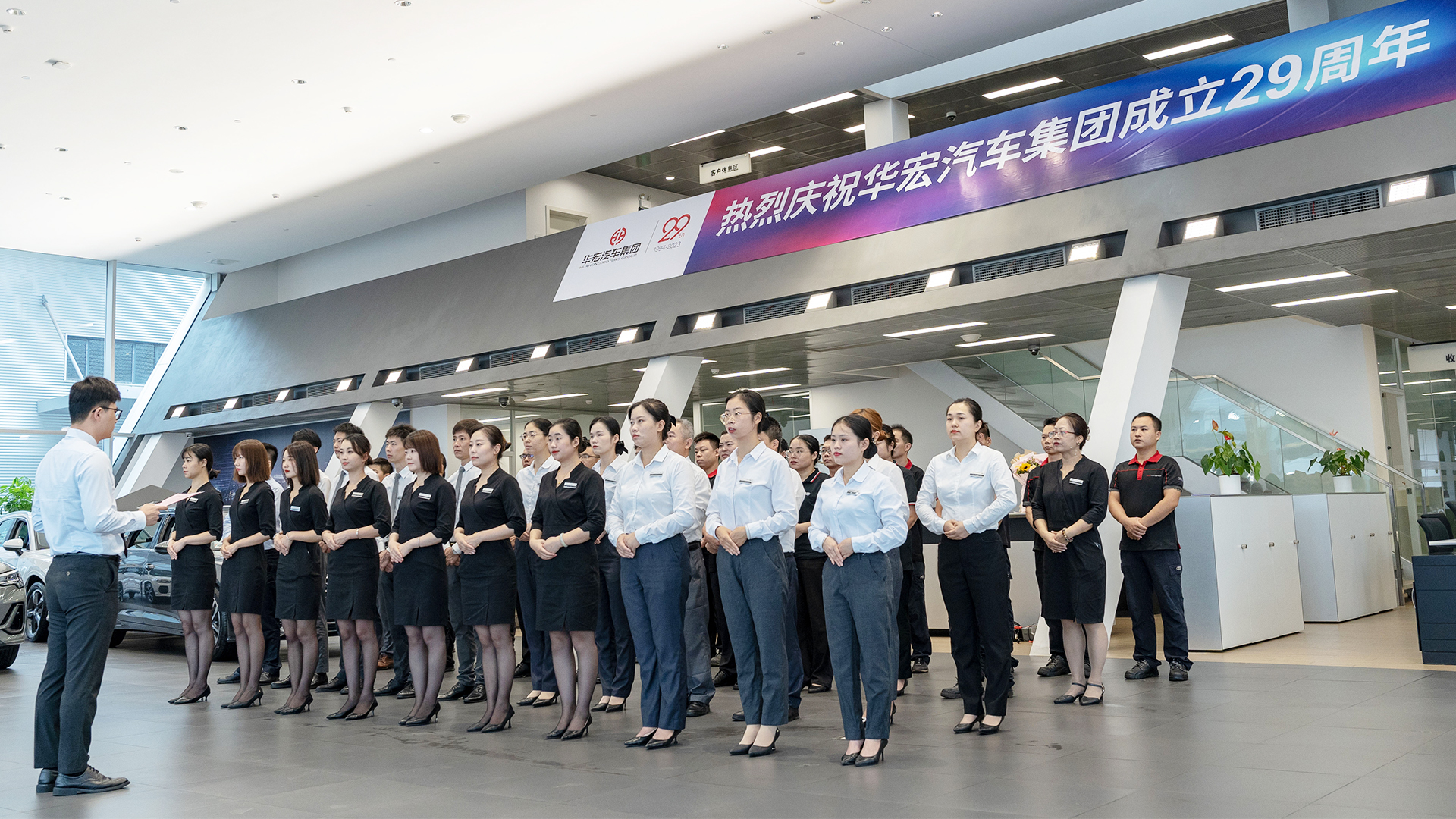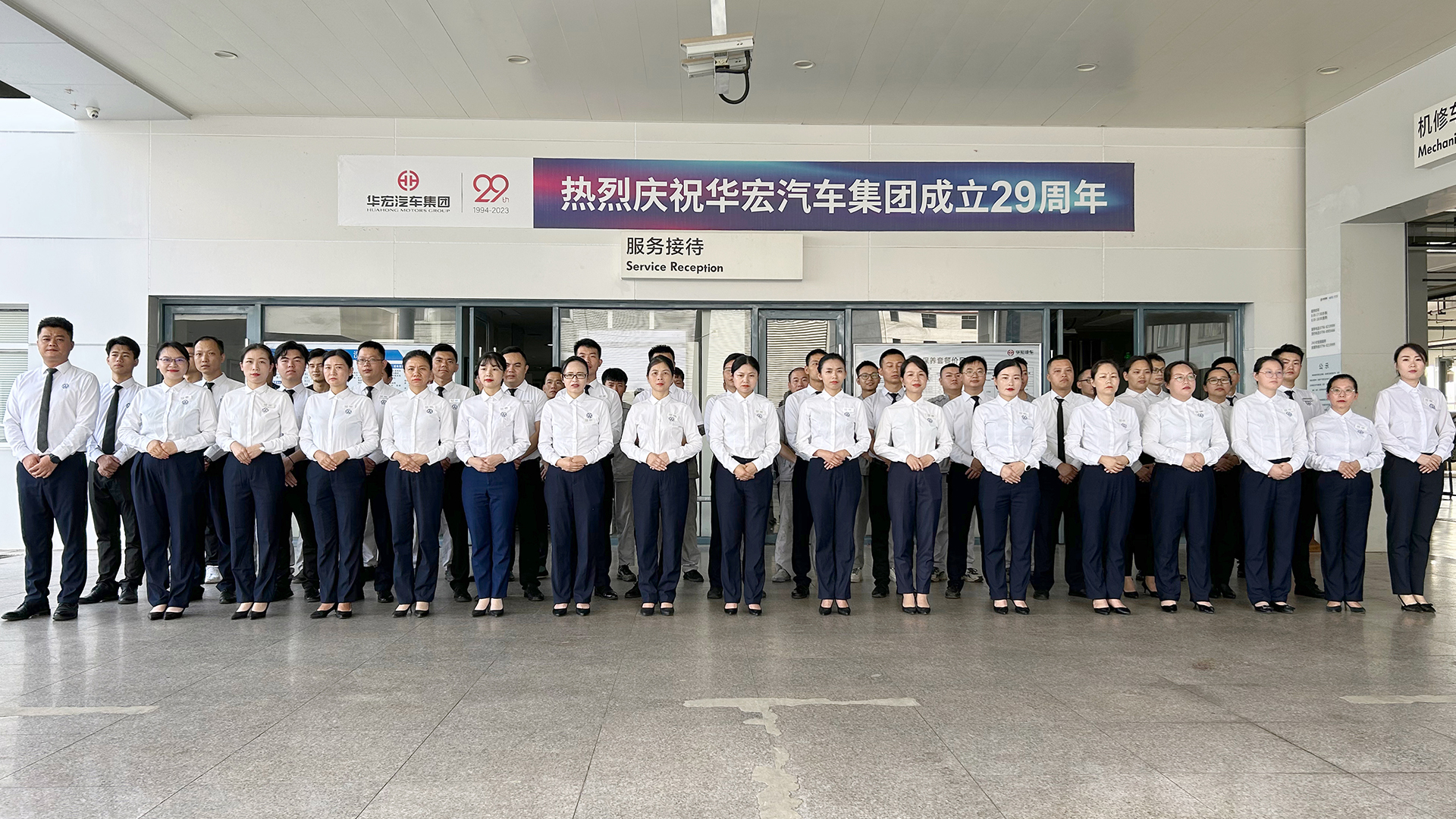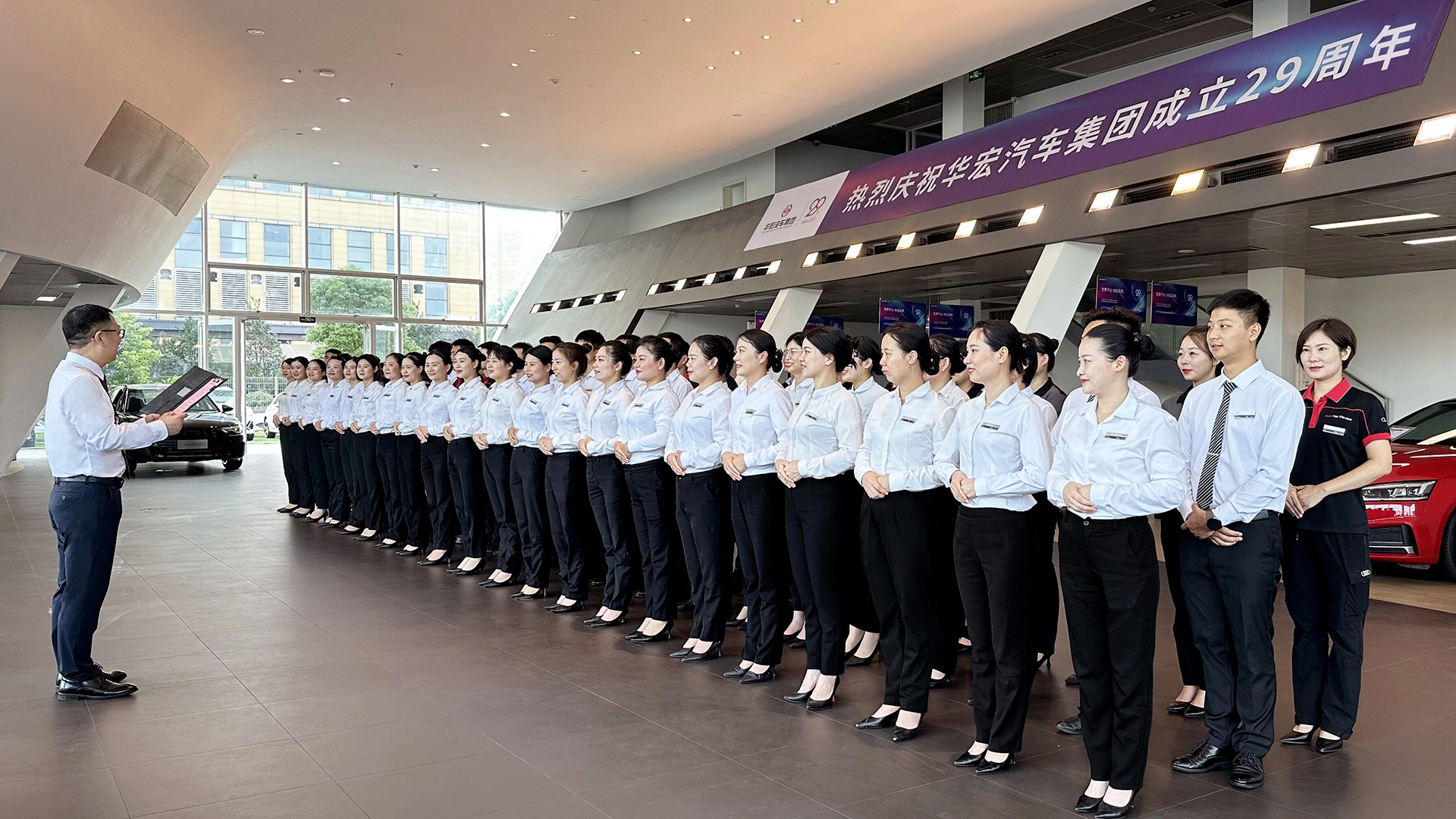 8月15日清晨,華宏汽車集團及旗下各子公司在同一時點,同步舉行特別晨會,共同慶祝華宏成立29周年。集團董事長戴華,黨委書記汪玉奇,集團各副總裁、總裁助理、品牌總經理分別出席各子公司晨會。