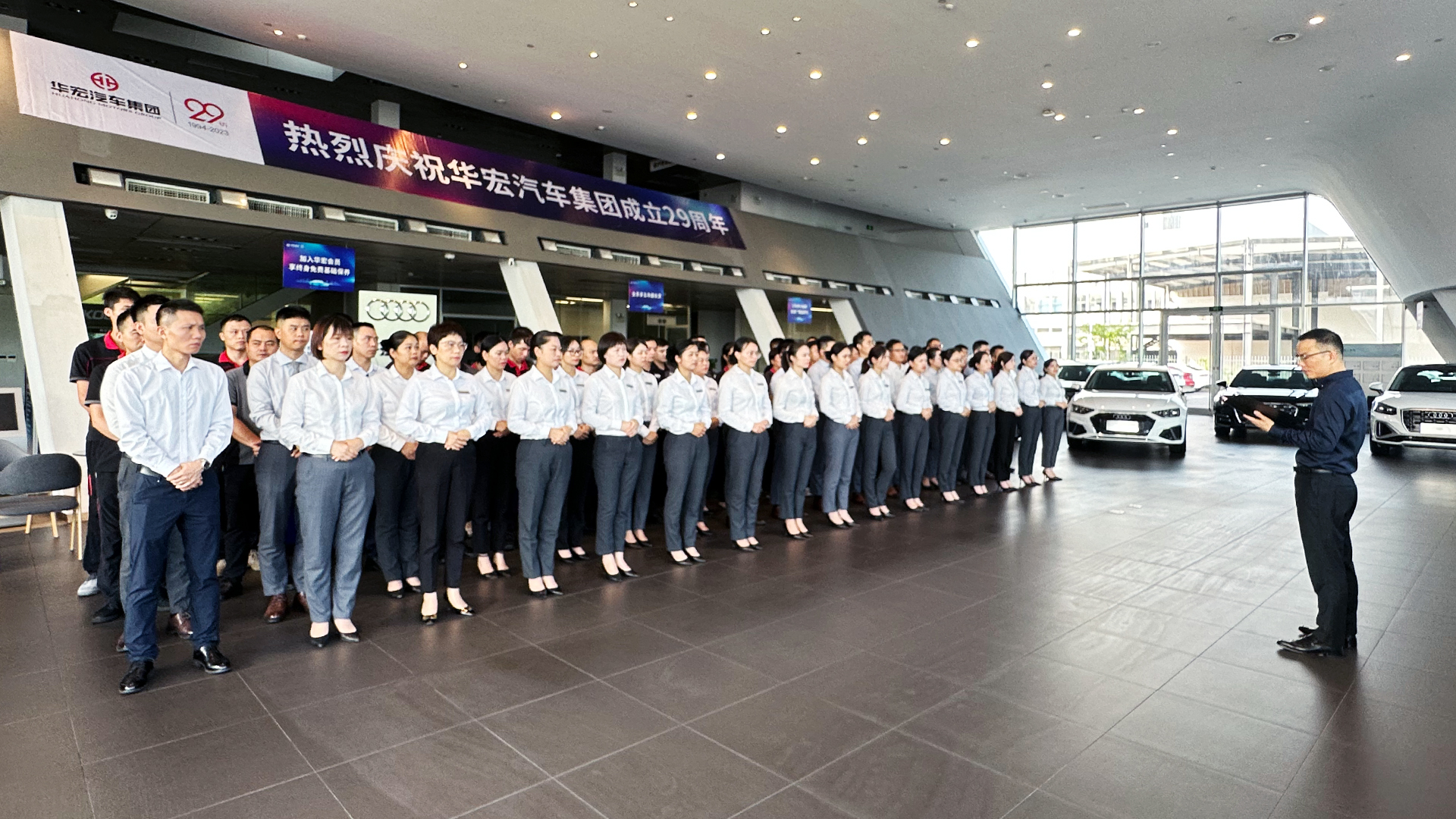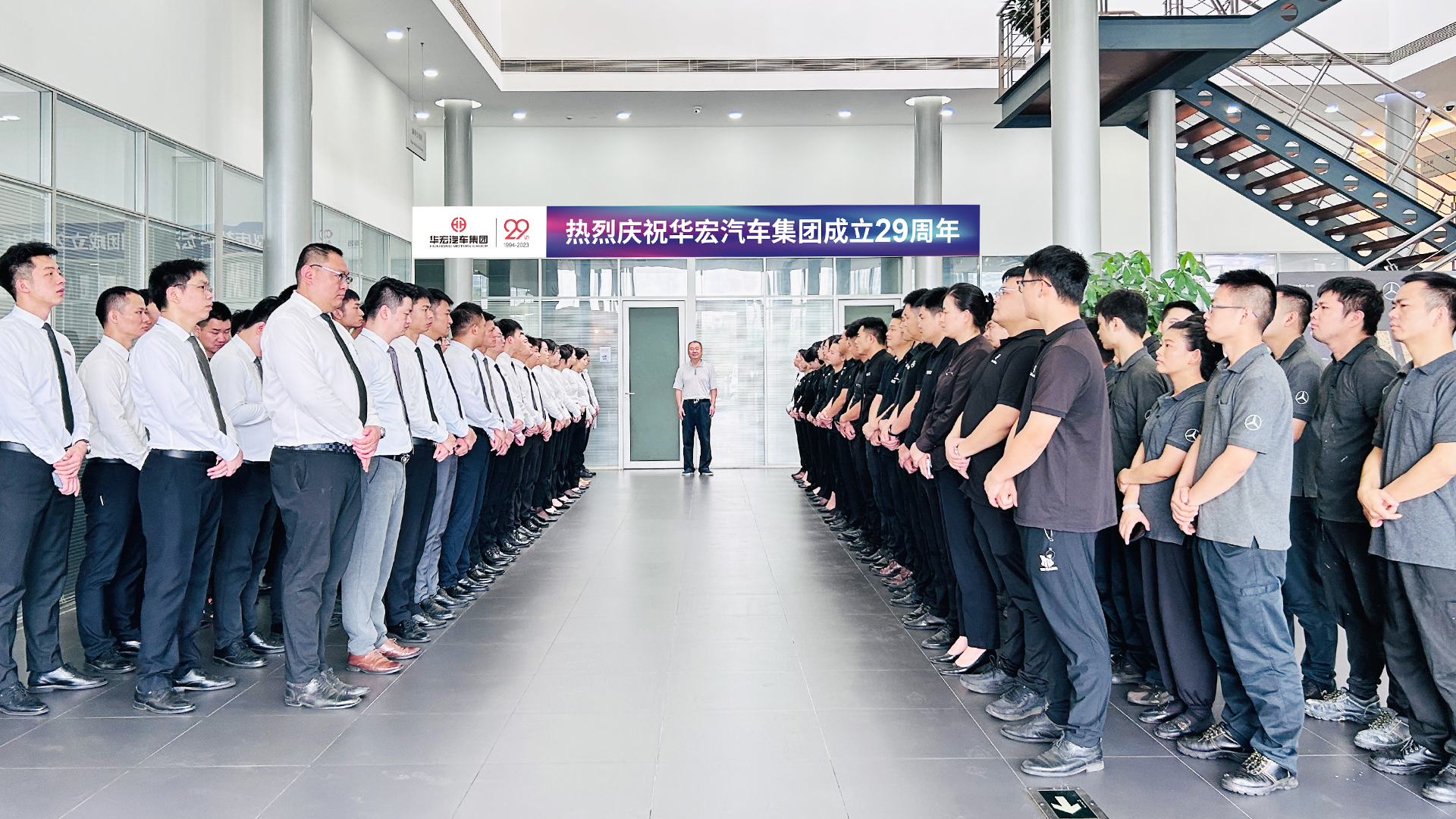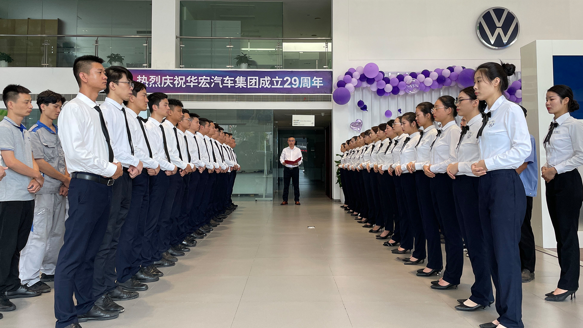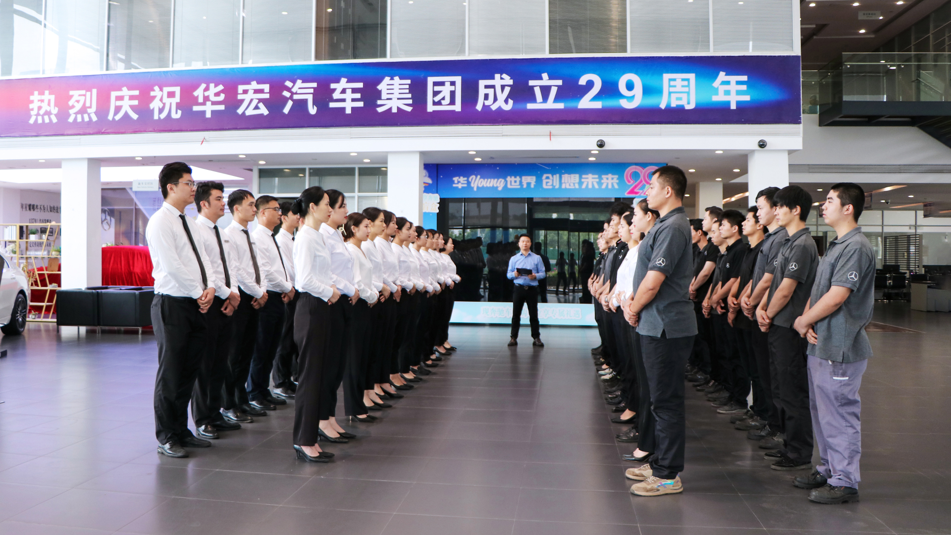 8月15日清晨,華宏汽車集團及旗下各子公司在同一時點,同步舉行特別晨會,共同慶祝華宏成立29周年。集團董事長戴華,黨委書記汪玉奇,集團各副總裁、總裁助理、品牌總經理分別出席各子公司晨會。