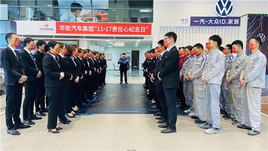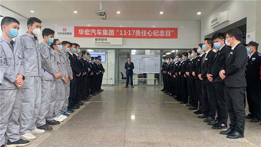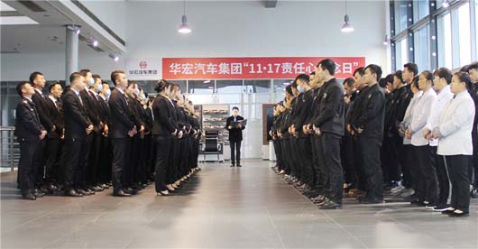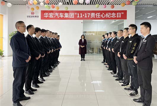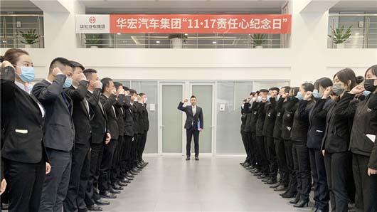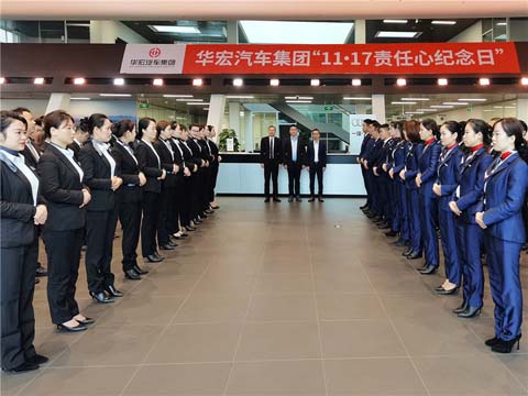 11月17日,集團及全省各地子公司同步莊嚴聚會,召開華宏汽車集團第14個“11-17責任心紀念日”特別晨會。連續14年的警示教育,旨在增強全體華宏人的責任意識與使命擔當,始終牢記客戶是我們的生存之本、發展之根,讓責任與使命鐫刻在華宏人心底,注入到華宏人靈魂深處,使華宏的企業文化得到更好的弘揚和傳承。