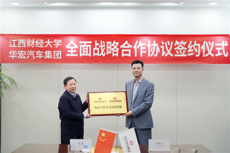 在簽約儀式后,繼續舉行了江西財經大學和華宏汽車集團“校企合作實習實踐基地”的授牌儀式和座談交流。