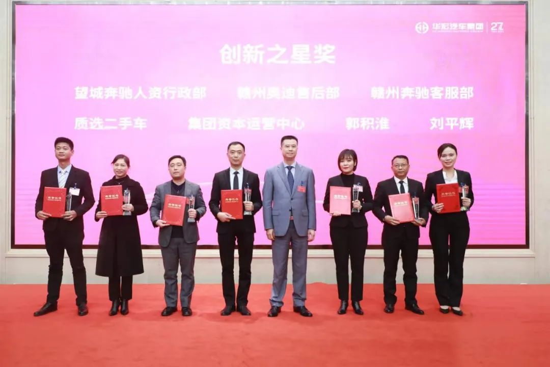 會議的最后階段,舉行了2021年經營目標責任書簽訂儀式和榮譽頒發儀式。各品牌總經理與所分管的品牌子公司負責人簽訂了2021年目標責任書。2020年“開拓之星、創新之星”獎的頒發,鼓舞了全體華宏人向先進學習,向優秀學習、更加努力奮進的拼搏激情。會議在激昂的音樂聲中形成高潮。3位子公司總經理代表的發言,進一步堅定了完成董事會下達的各項經營任務目標的信心與決心。
