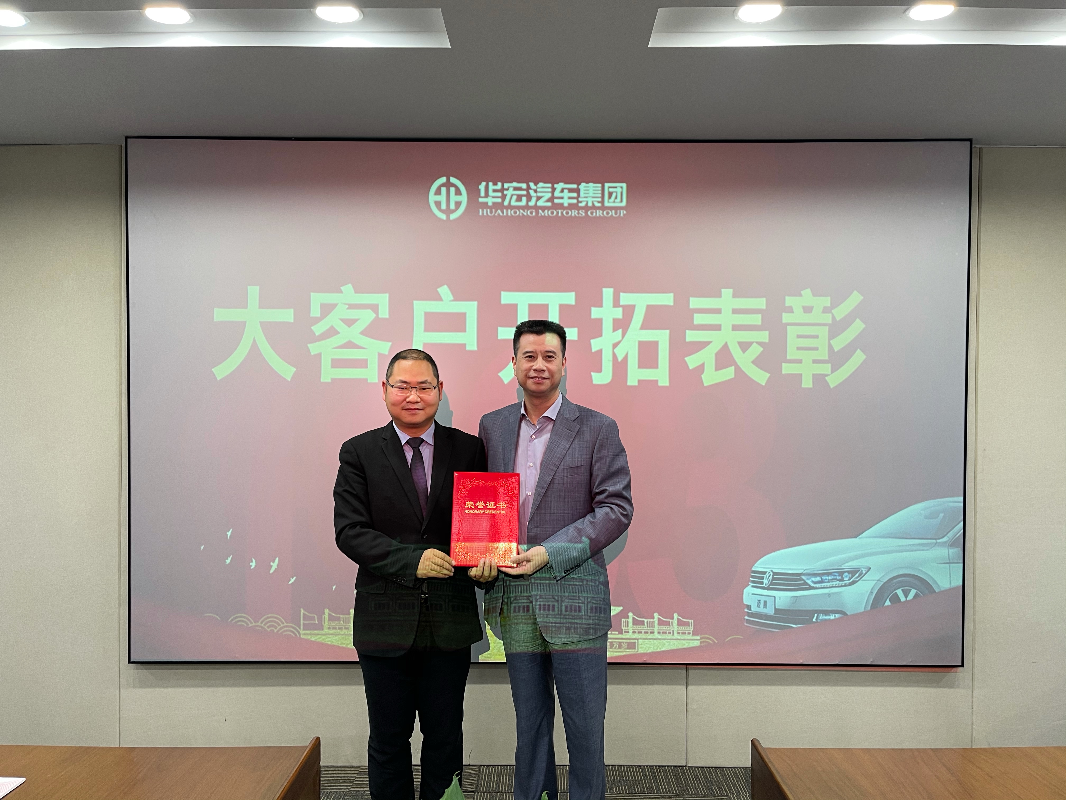 董事長戴華為青云譜一汽-大眾、九江一汽-大眾頒發(fā)“市場(chǎng)開拓團(tuán)隊(duì)貢獻(xiàn)獎(jiǎng)”