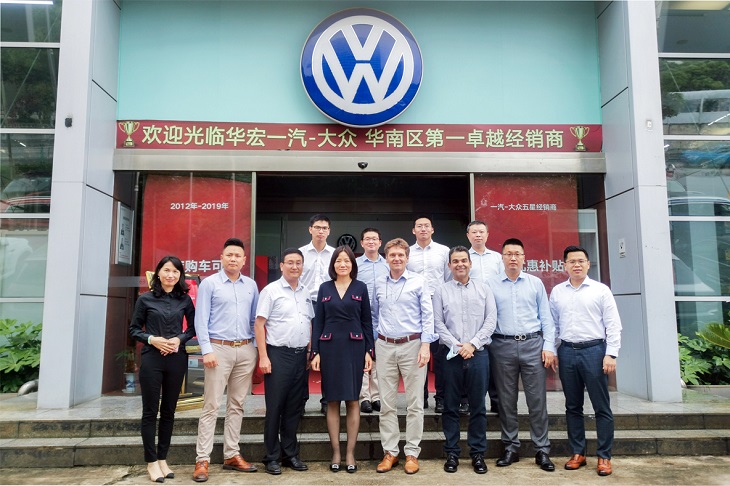 5月21日,一汽-大眾華南區事業部總經理竇繪娟、岳斯譚,區域銷售部總監謝元凱、愛德華多薩帕約,區域市場與公關部總監仇明全一行蒞臨華宏汽車集團。在走訪中,竇繪娟高度評價了華宏憑借誠信經營和業務創新的理念發展壯大,充分肯定了華宏在激烈的市場競爭中為一汽-大眾品牌在江西市場的發展所起到的中流砥柱作用。華宏汽車集團董事長戴華、營運副總裁周升光、一汽-大眾品牌總經理繆偉奇陪同走訪和座談。