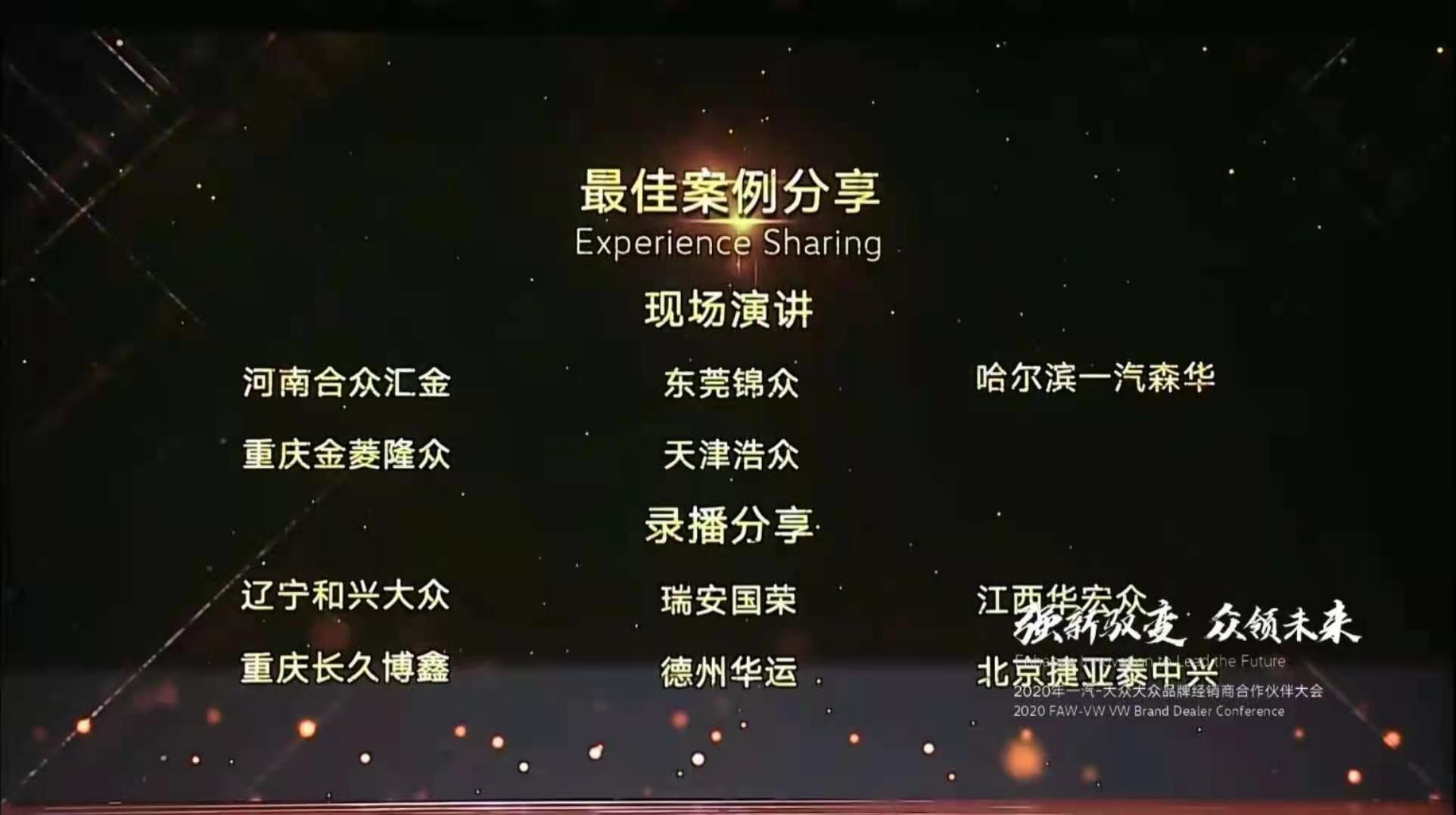 2020年12月15日,一汽-大眾大眾品牌經(jīng)銷商合作伙伴大會頒獎典禮在長春隆重召開,華宏一汽-大眾青云譜4S店再一次從全國近千家經(jīng)銷商中脫穎而出,榮膺“2020年一汽-大眾華南區(qū)第一卓越經(jīng)銷商”。