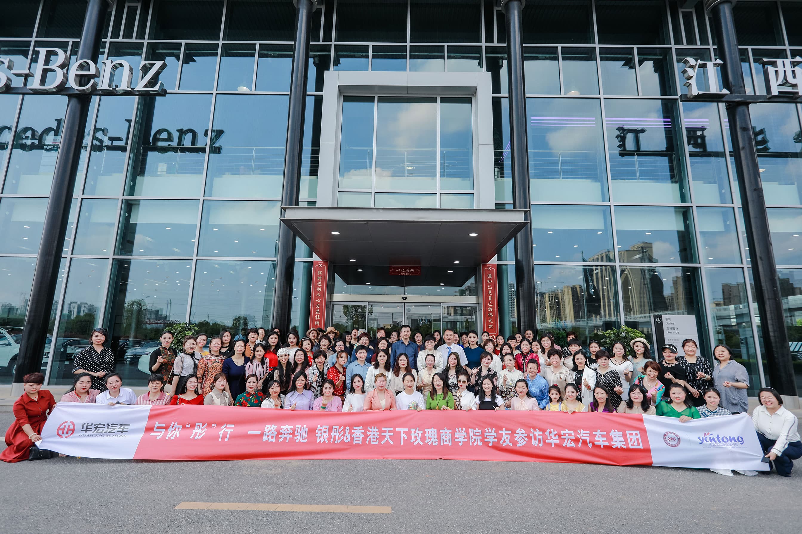 5月9日,在這溫馨而又典雅的日子里,銀彤、香港天下玫瑰商學院120余名女性企業家學友在院長 劉春薺的帶領下參訪華宏汽車集團旗下望城奔馳體驗中心。本次參訪,旨在讓學友們深入了解、學習 華宏的經營管理理念與管理體系,促進學院與企業間的相互交流,拓展現代企業經營視野。華宏汽車 集團董事長戴華,黨委書記、華宏商學院院長汪玉奇,奔馳品牌總經理程文姣,工會主席陳娜出席參 訪活動,集團辦公室執行副主任諶敏主持活動。